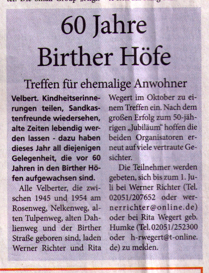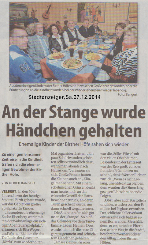 Hier findet Ihr Artikel aus der Tageszeitung zu unserem Treffen![]() Artikel aus dem Stadtanzeiger vom 27.12.2014